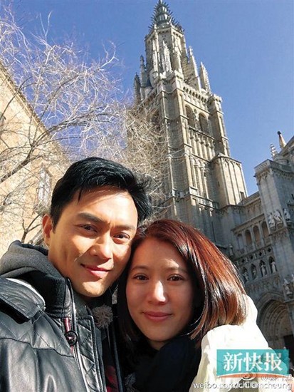 张智霖晒与爱妻旅行合影 二人微笑表情神同步