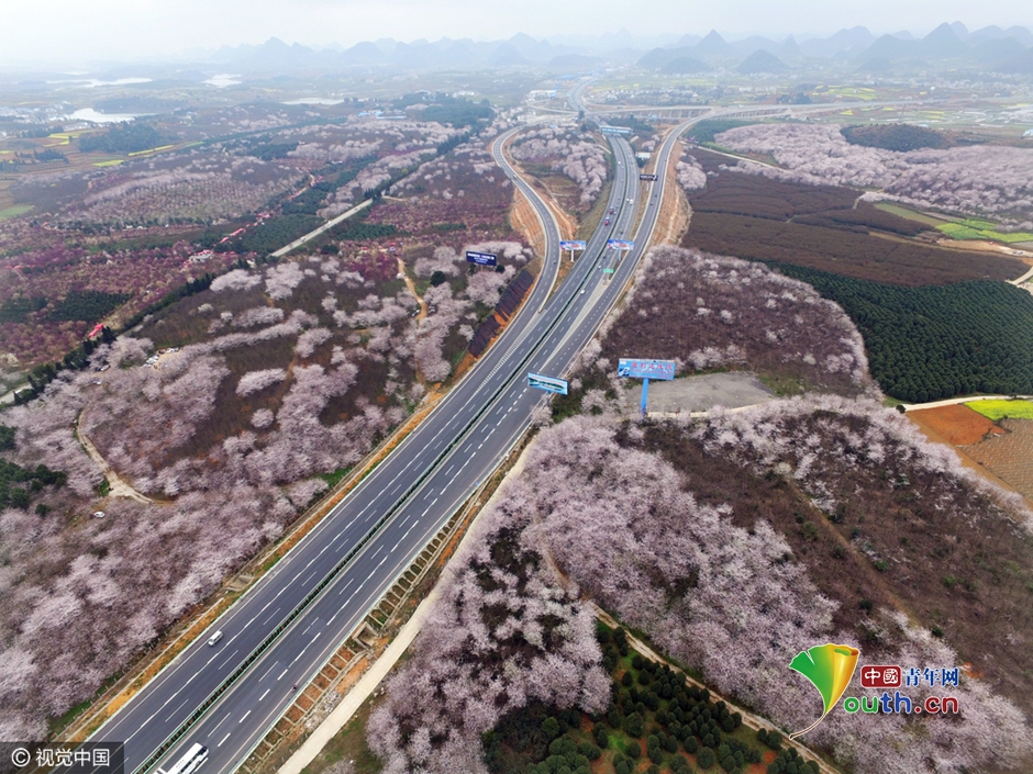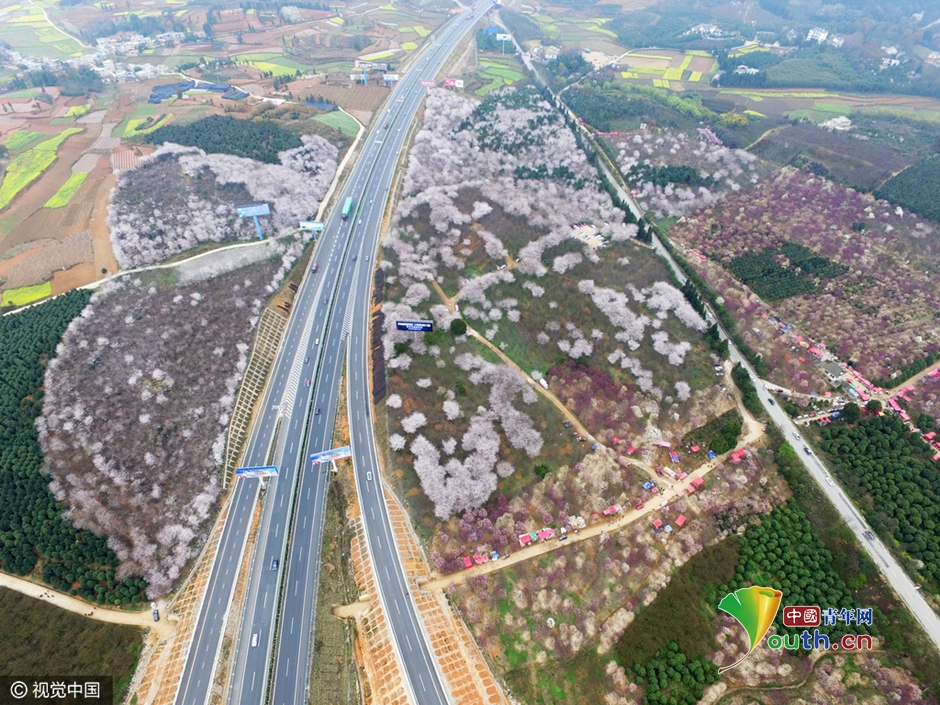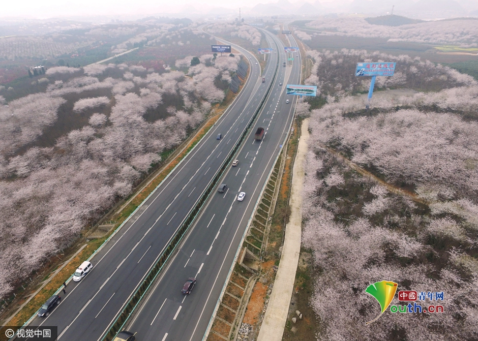 2016年03月18日,贵阳一段高速公路受到人们赞美,被称为最美高速公路。这段高速公路是沪昆高速贵州省清镇至安顺段,两侧花海环抱,纵横几公里。图片作者:吴东俊/视觉中国[!--empirenews.page--]