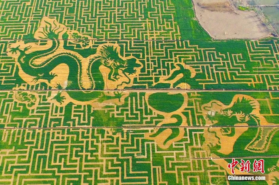 南京农民田野“编龙袍” 空中俯瞰颇为震撼