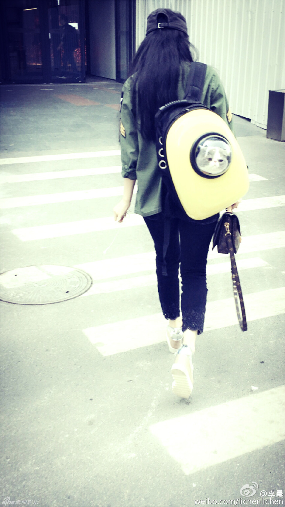 4月25日,范冰冰在微博分享猫奴的日常,她出行不忘把猫咪背在一起,满脸的宠溺。范冰冰晒照前,李晨便晒出了照片,大秀了一把恩爱。