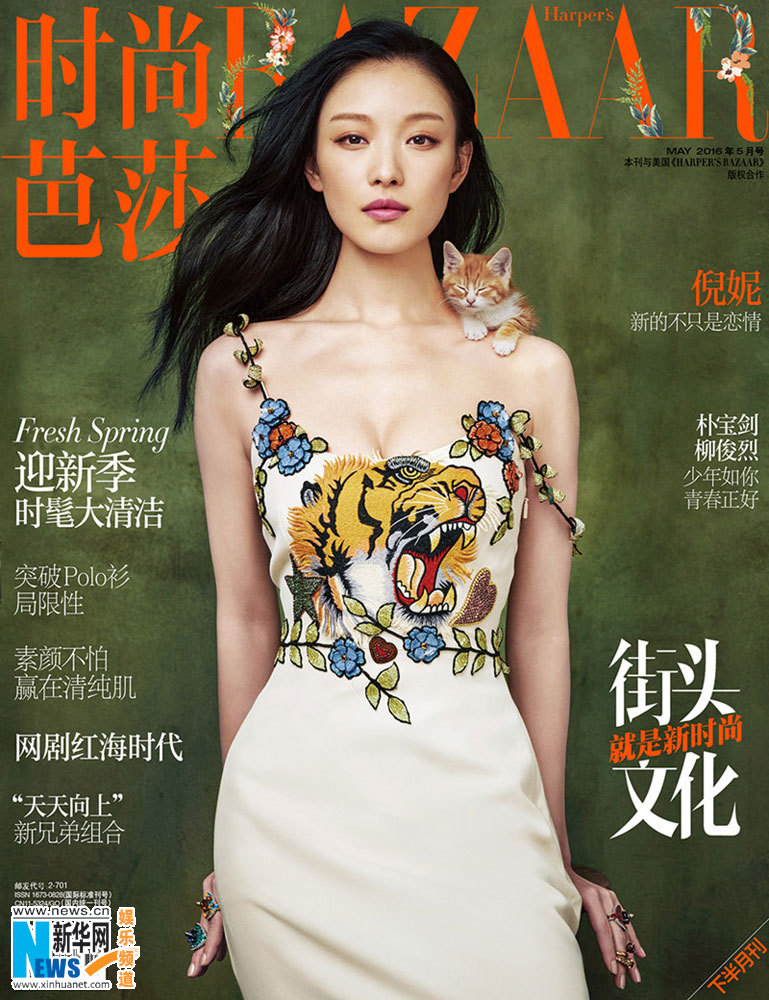 倪妮带喵星人上封面 慵懒演绎复古春意