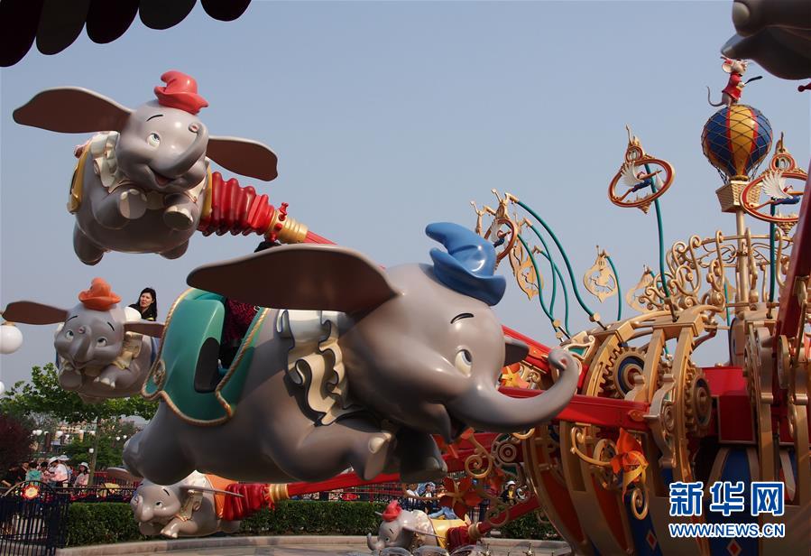 参观者在上海迪士尼乐园里乘坐“小飞象”(5月11日摄)。 5月11日是上海迪士尼乐园的又一个内部测试日。在乐园运营管理方的安排下,上万名参加测试的乐园建设者及其家属参观了园内部分景点和游乐设施。据悉,上海迪士尼乐园将于6月16日开幕。新华社记者 任珑 摄[!--empirenews.page--]