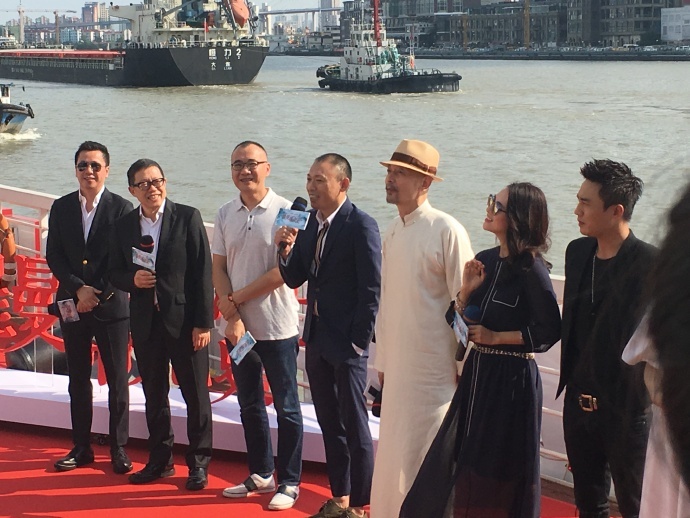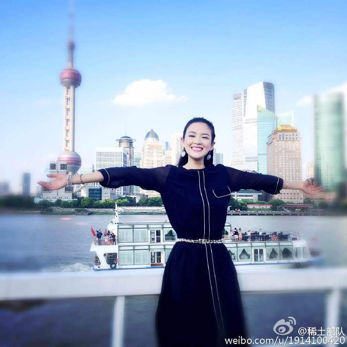 8月18日,章子怡与葛优、杜淳、霍思燕、杜江等明星出席电影《罗曼蒂克消亡史》上海发布会。章子怡在黄浦江边展开双臂,笑容甜蜜似少女。