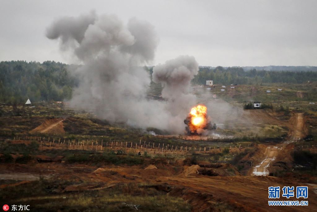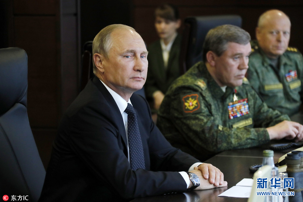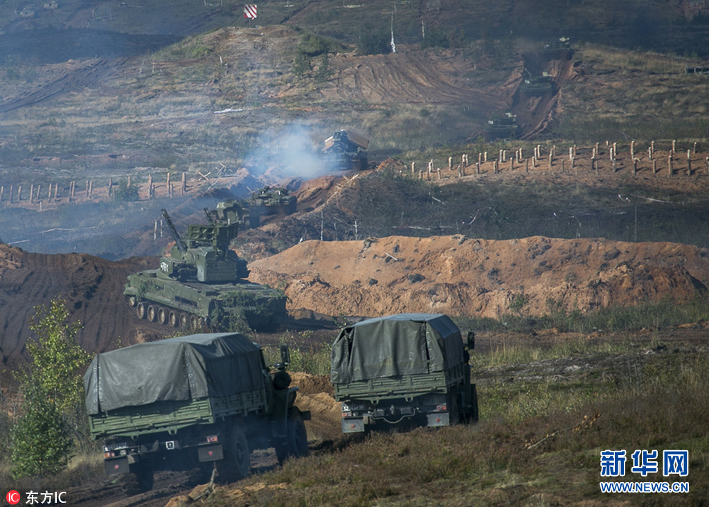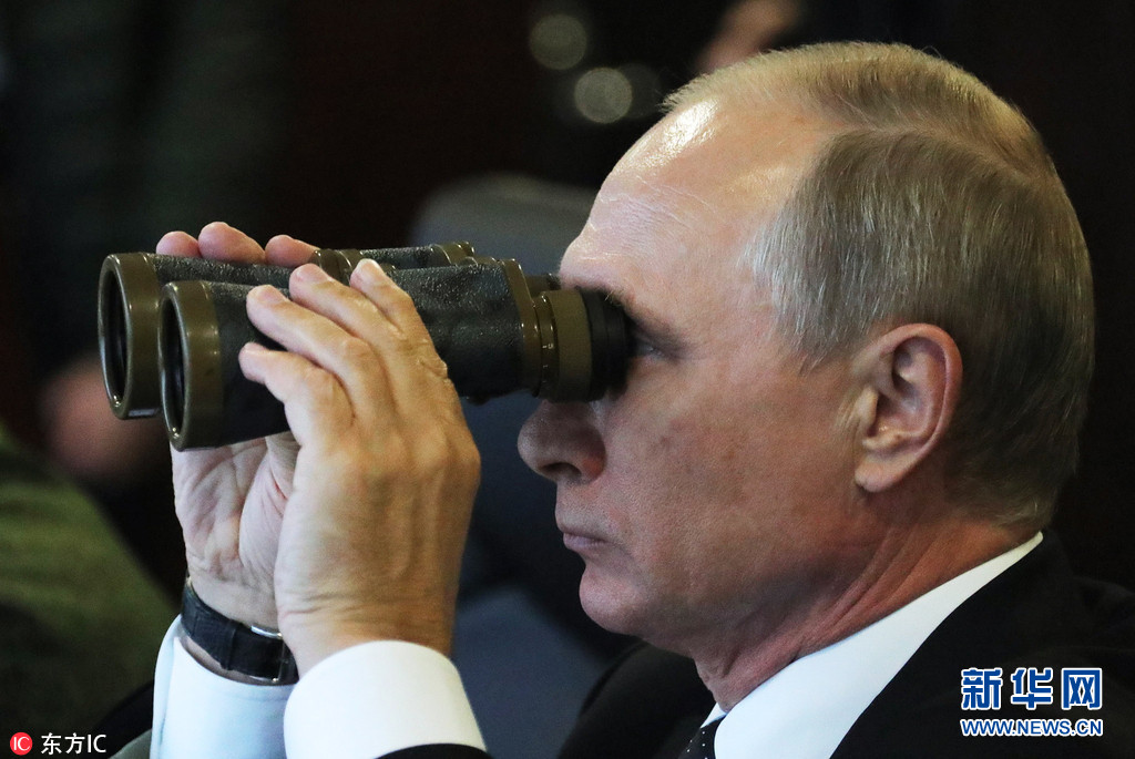 当地时间2017年9月18日,俄罗斯列宁格勒州,“西方-2017”俄白联合军事演习在当地举行,俄罗斯总统普京出席观摩。据悉,今年的"西方-2017"战略演习于9月14日至20日在白俄罗斯境内和三个俄罗斯靶场举行,总参演人数达到1.27万。图片来源:东方IC