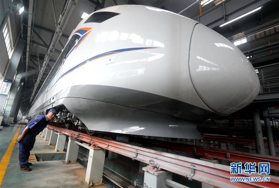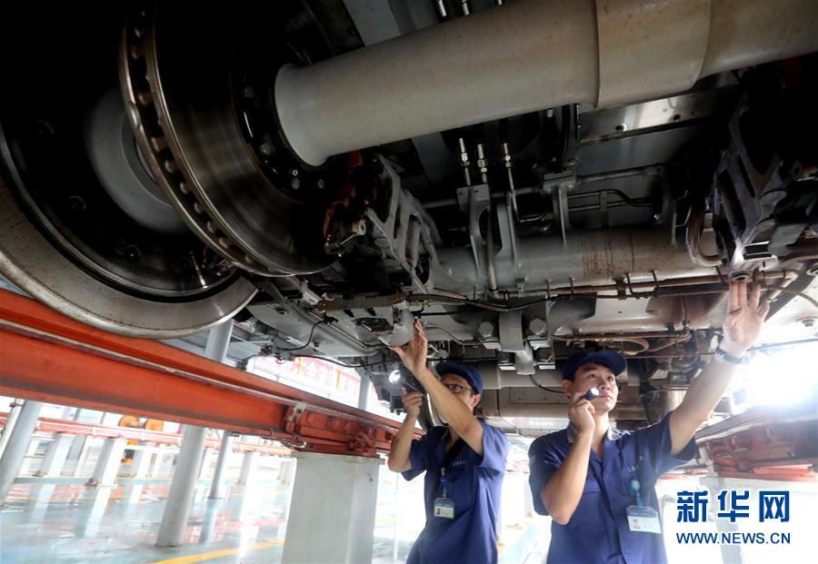 9月26日,技术人员在对CRH6A新型动车组走行部进行调试与检查。
