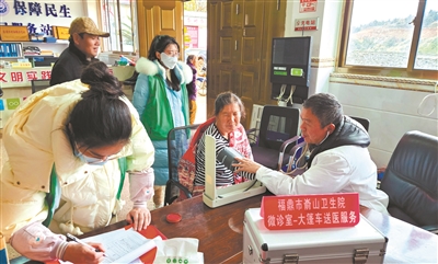 全方位联动的机制,让健康保障更有力度。“微诊室大篷车”的医护人员在诊疗过程中遇到急危重症患者时,可通过绿色通道快速转诊至上级医院;福鼎市医院专家定期随车进村,既为群众解决复杂病症,也通过现场带教提升基层医务人员诊疗水平。服务还联动乡镇,由镇村干部与医护团队同步入户,将困难帮扶、政策宣讲、矛盾调解等政务服务与医疗服务有机融合,实现“一次上门、多重服务”。