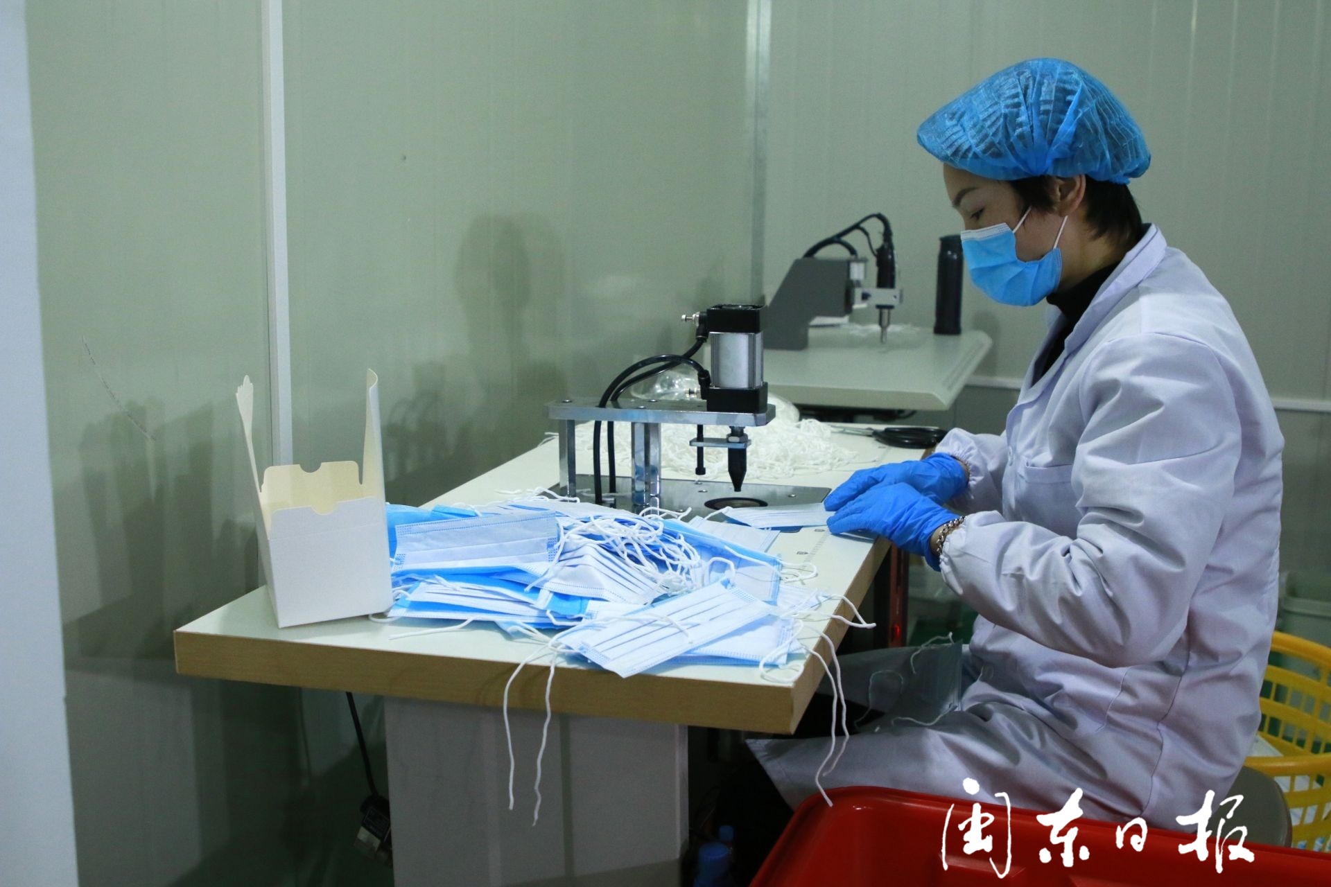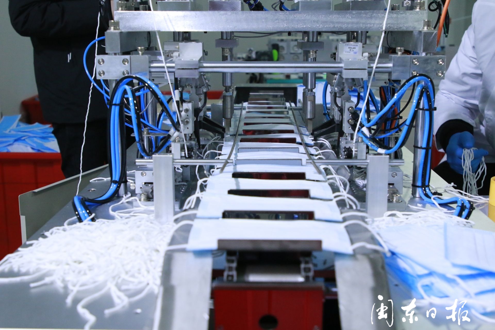 该公司总经理郑永士介绍,3月10日,该口罩厂正式投产,为保障生产效率,该车间以机器加手工的方式进行生产。目前,该厂共有20多名员工,24小时三班倒不间断生产。经过前段时间的调试,近日产量已逐渐提升,目前每日大约可生产口罩5万至6万个,投产以来已生产约15万个口罩。